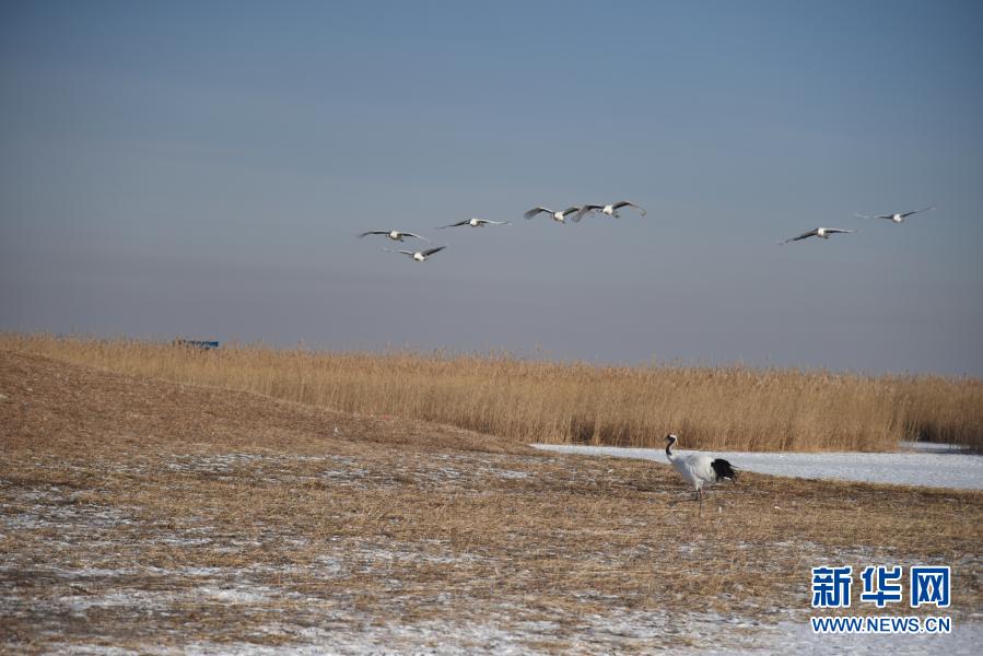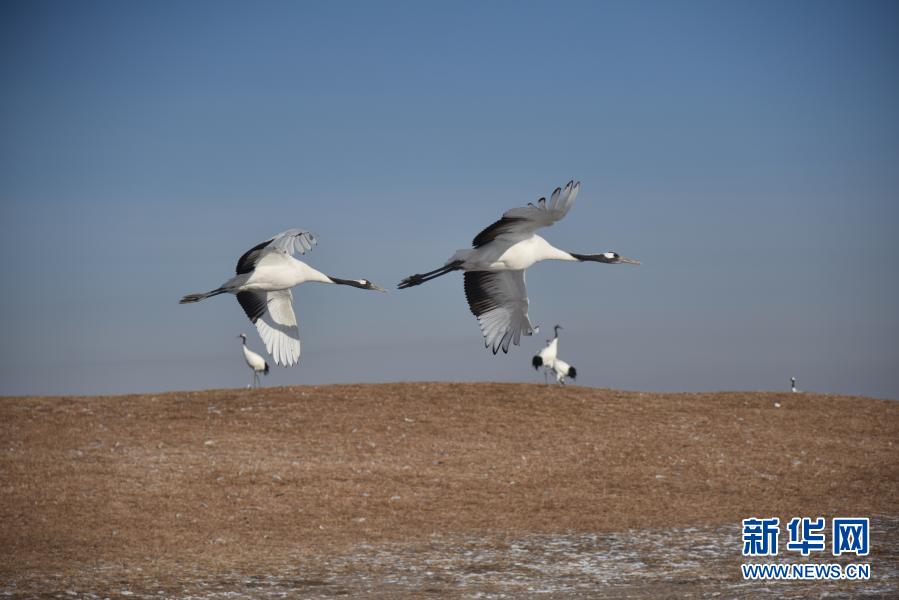 寒冬中,黑龍江扎龍國家級自然保護區的丹頂鶴在蔚藍的天空中展翅飛翔,在潔白的雪地上翩翩起舞,引來許多游人駐足觀賞。黑龍江扎龍國家級自然保護區是我國規模最大的丹頂鶴人工繁育野化基地,截至目前,人工繁育和半散養丹頂鶴種群已達500只。