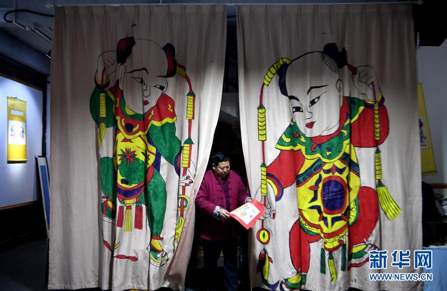 1月19日,開封市朱仙鎮(zhèn)的年畫藝人在晾曬木版年畫。