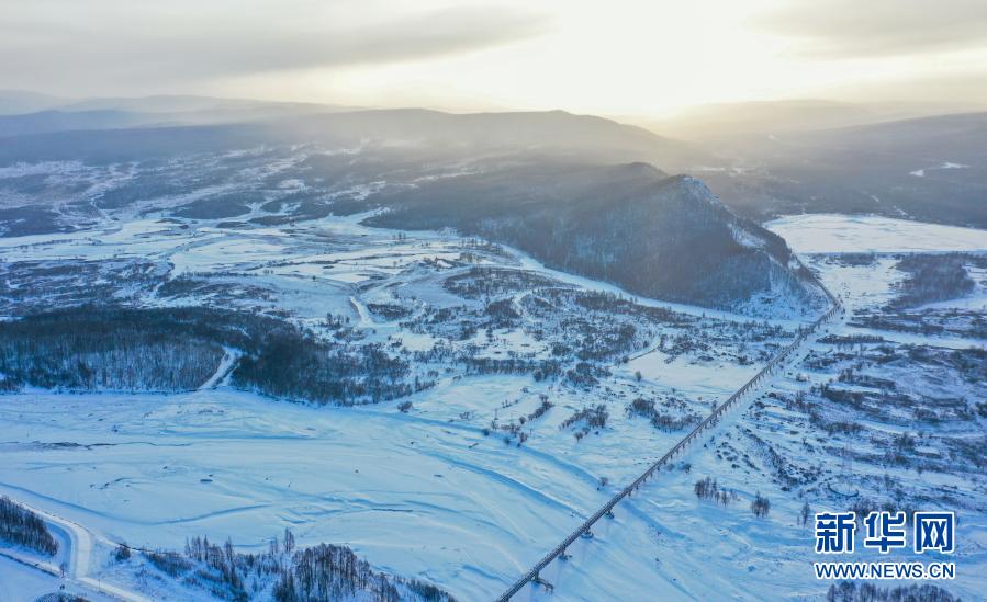 1月27日,大興安嶺深處的根河被白雪覆蓋(無人機照片)。
