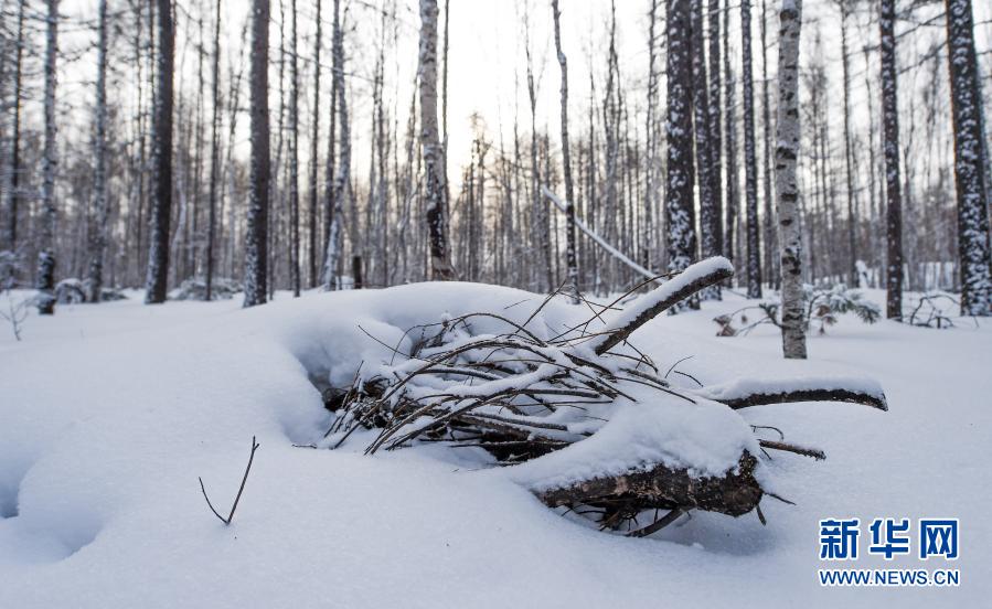 這是位于大興安嶺的內蒙古根河市附近雪景(1月26日攝)。