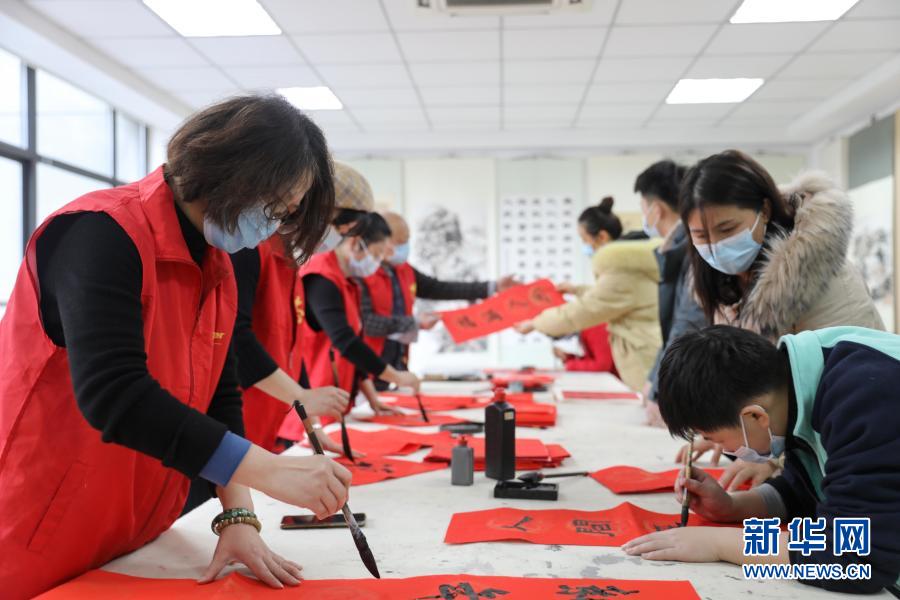 新春佳節臨近,安徽省合肥市濱湖世紀社區開展“翰墨飄香迎新春”主題活動,來自社區的書法愛好者現場書寫春聯并送到留在合肥過年的外來務工人員家中。