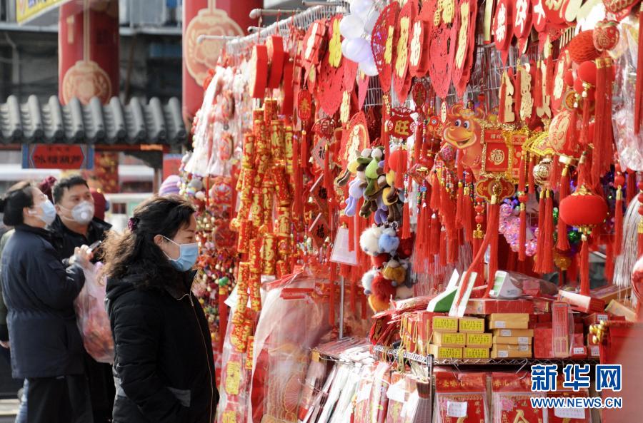 1月27日,市民在和平里一處市場選購春節(jié)裝飾品。