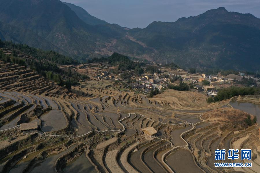 立春時節,位于浙江省麗水市云和縣崇頭鎮的云和梯田呈現別樣的韻味。