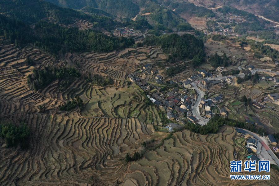 2月3日在云和縣崇頭鎮拍攝的云和梯田景色(無人機照片)。