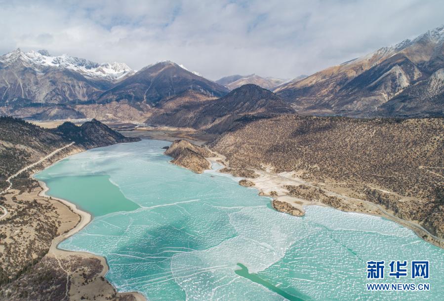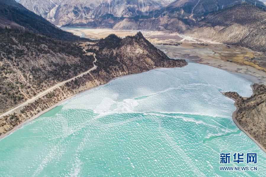 這是2月16日拍攝的然烏湖(無人機照片)。然烏湖位于西藏昌都市八宿縣境內,是帕隆藏布江的主要源頭。然烏湖是由于山體滑坡或泥石流堵塞河道而形成的堰塞湖,因為緊靠川藏公路而為許多旅行者所熟知。新華社記者 孫非 攝