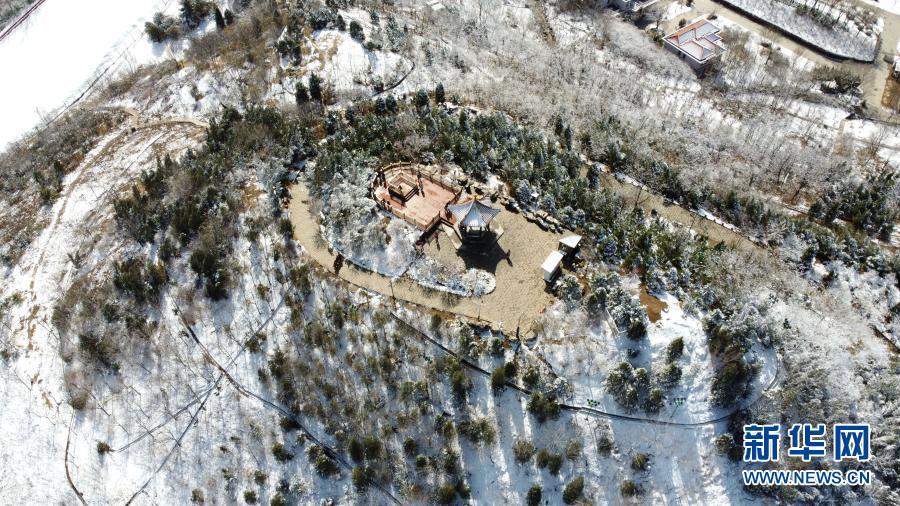 3月1日拍攝的天津市南翠屏公園內的雪景(無人機照片)。