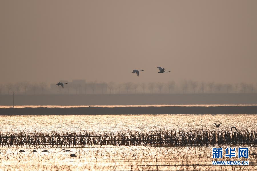 3月9日,候鳥在達拉特旗境內黃河濕地上空飛翔。