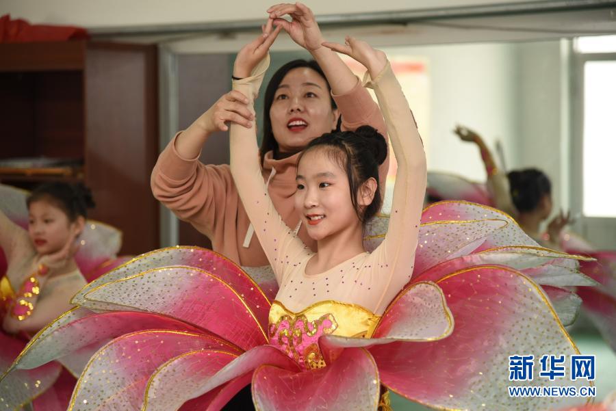 3月17日,河北省河間市第一實驗小學學生在老師指導下練習舞蹈。