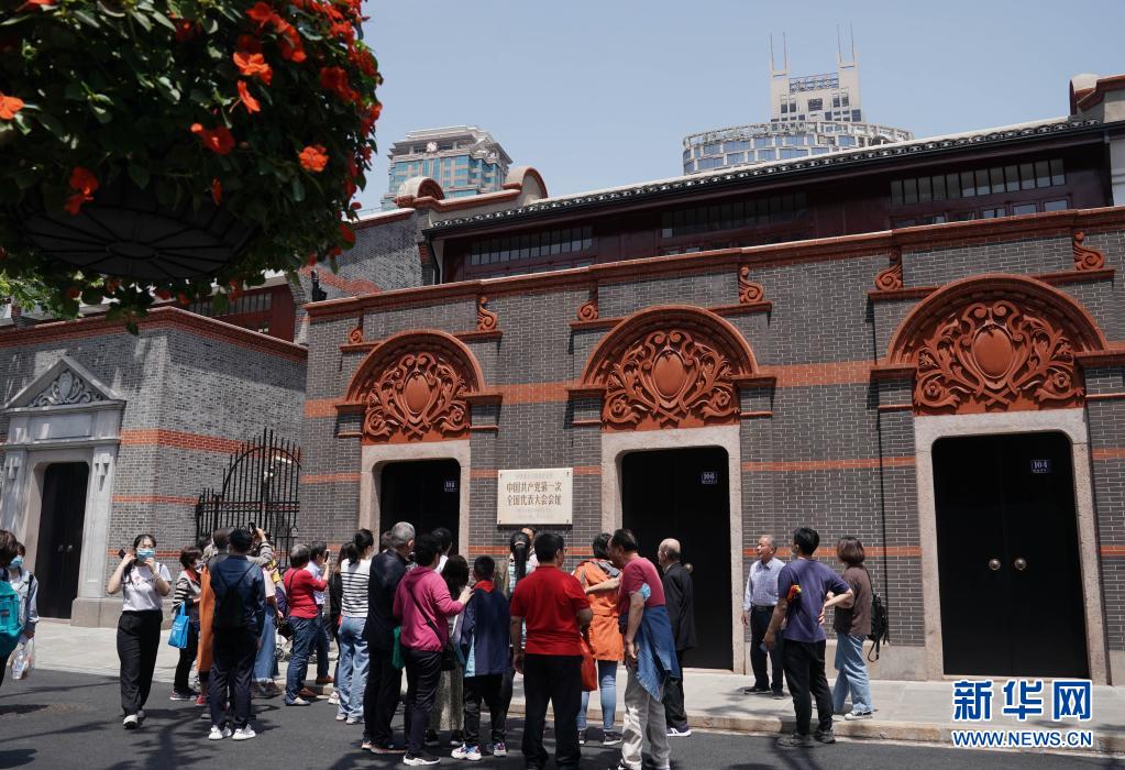 游客在位于上海的中共一大會址參觀留影(5月1日攝)。
