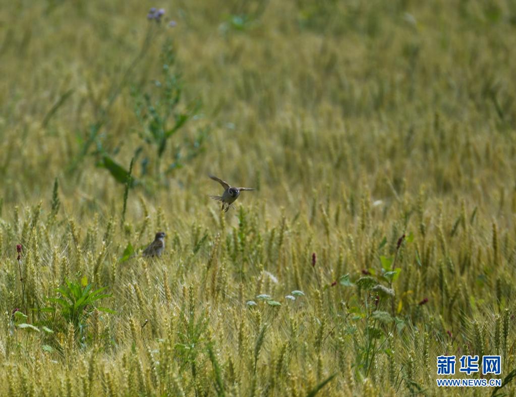 在東林鎮東升村,白鷺飛過麥田(5月7日攝)。