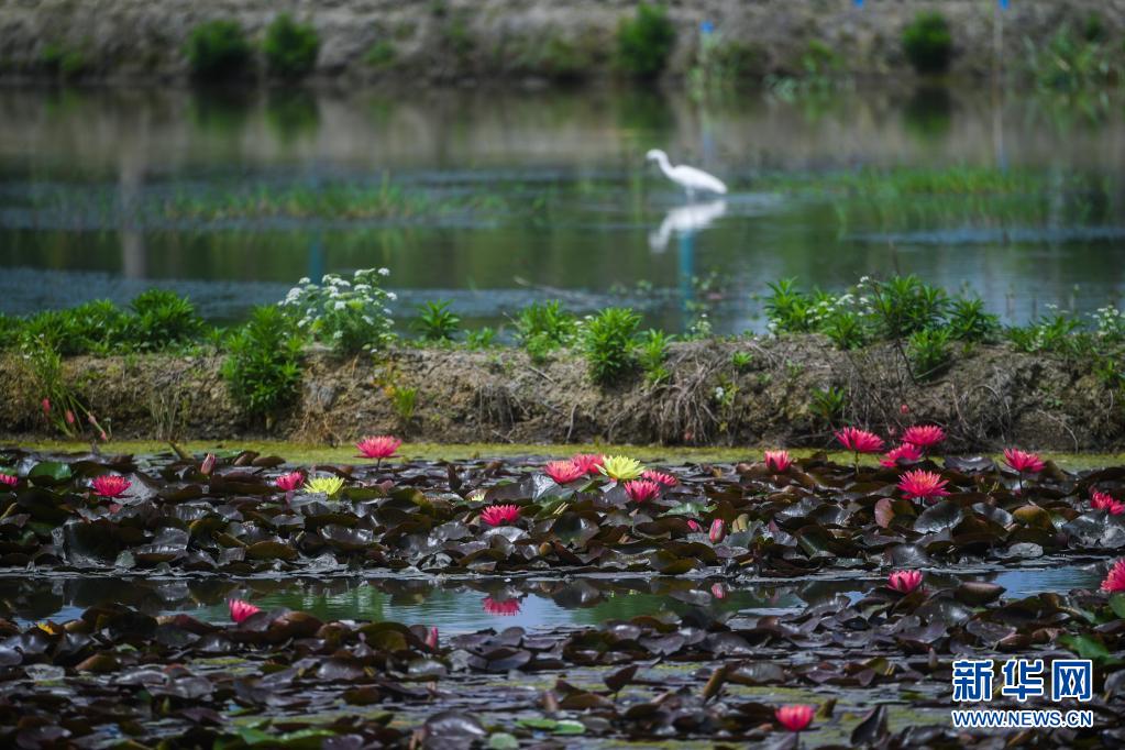 在東林鎮東方村,水田里種植的睡蓮盛開(5月7日攝)。