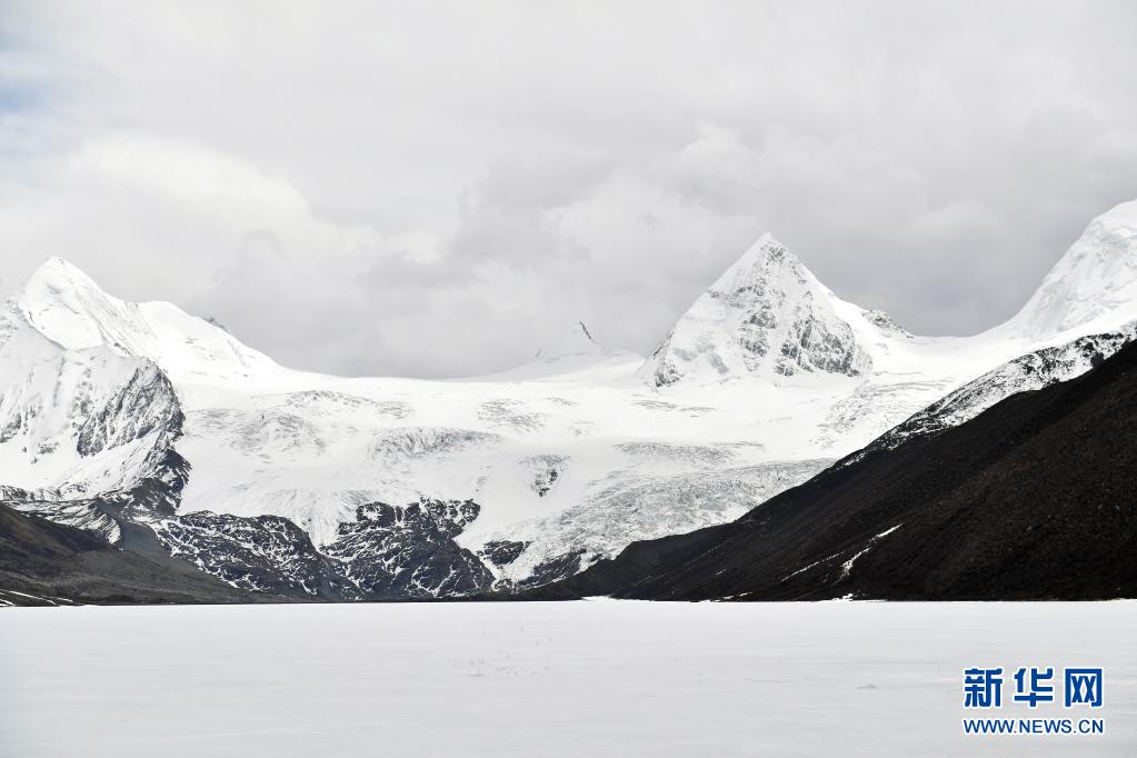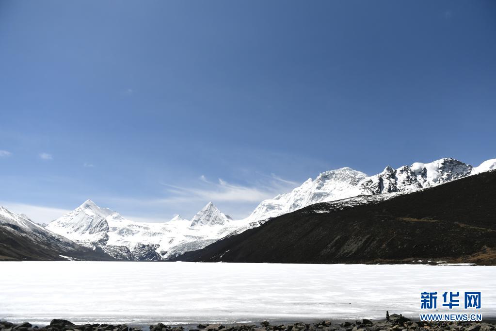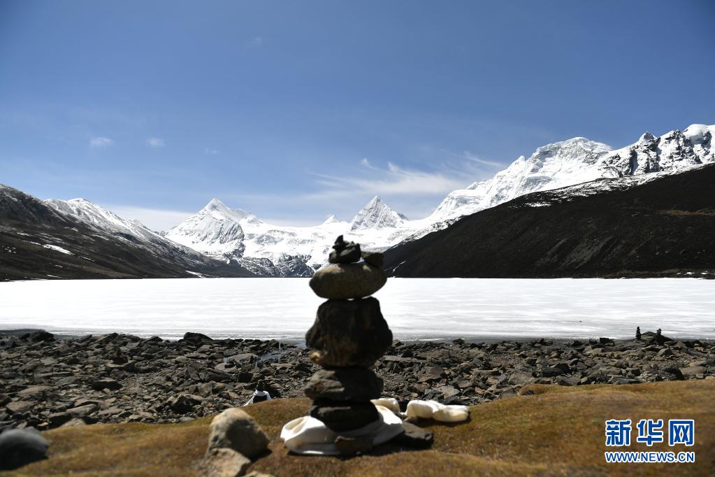 這是5月4日拍攝的薩普雪山和雪山腳下的冰湖(無人機照片)。