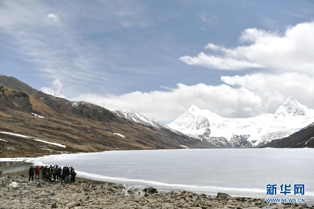 5月4日,游客在那曲市比如縣境內的薩普雪山附近拍照。