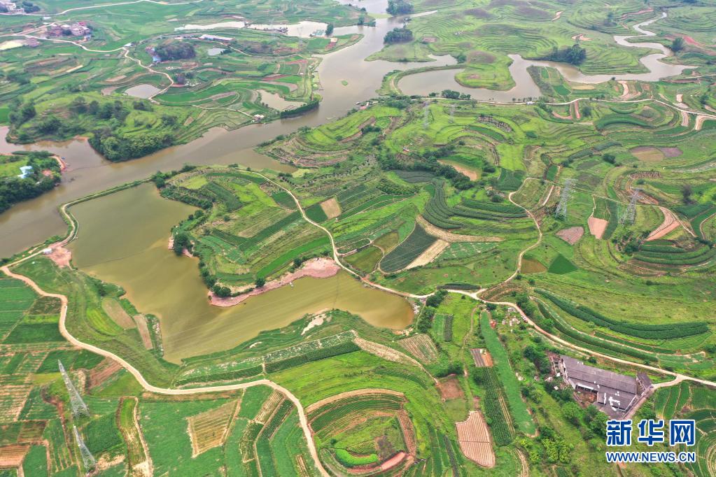 這是南寧市邕寧區(qū)蒲廟鎮(zhèn)的田園景色(5月9日攝,無人機照片)。