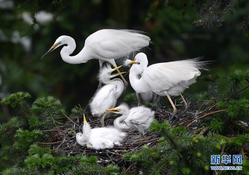 在南昌市新建區象山森林公園內,白鷺和雛鳥們在一起(5月18日攝)。
