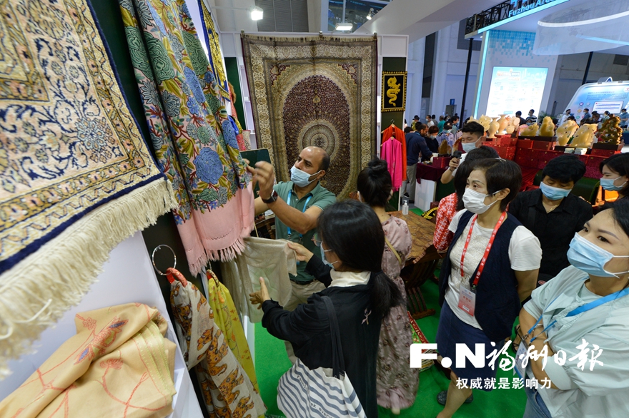 市民在海絲進口商品展區挑選絲綢產品。福州日報記者 池遠 攝