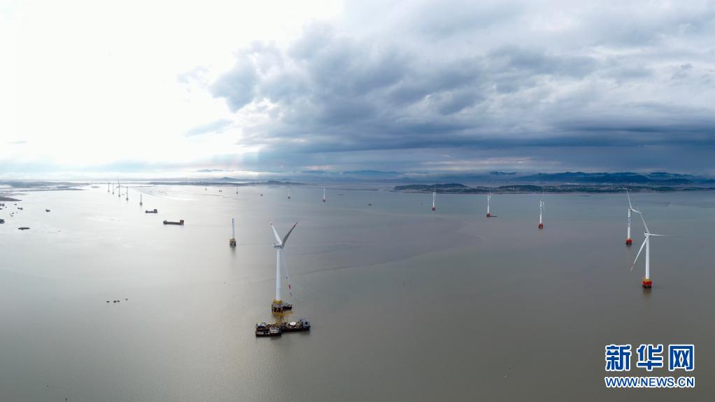 這是5月28日拍攝的正在建設中的華電福清海壇海峽海上風電項目(無人機照片)。