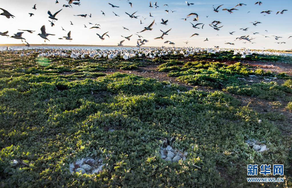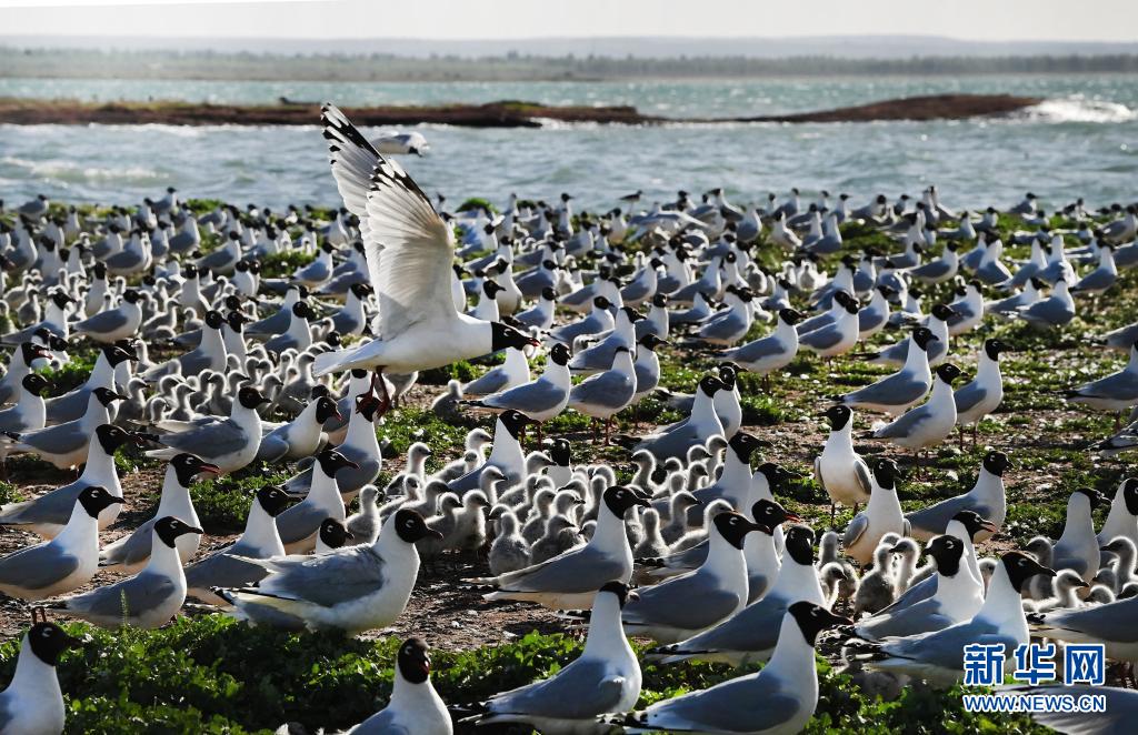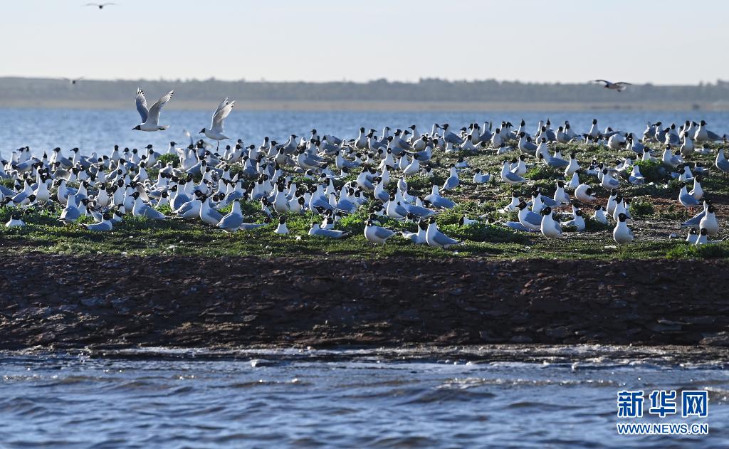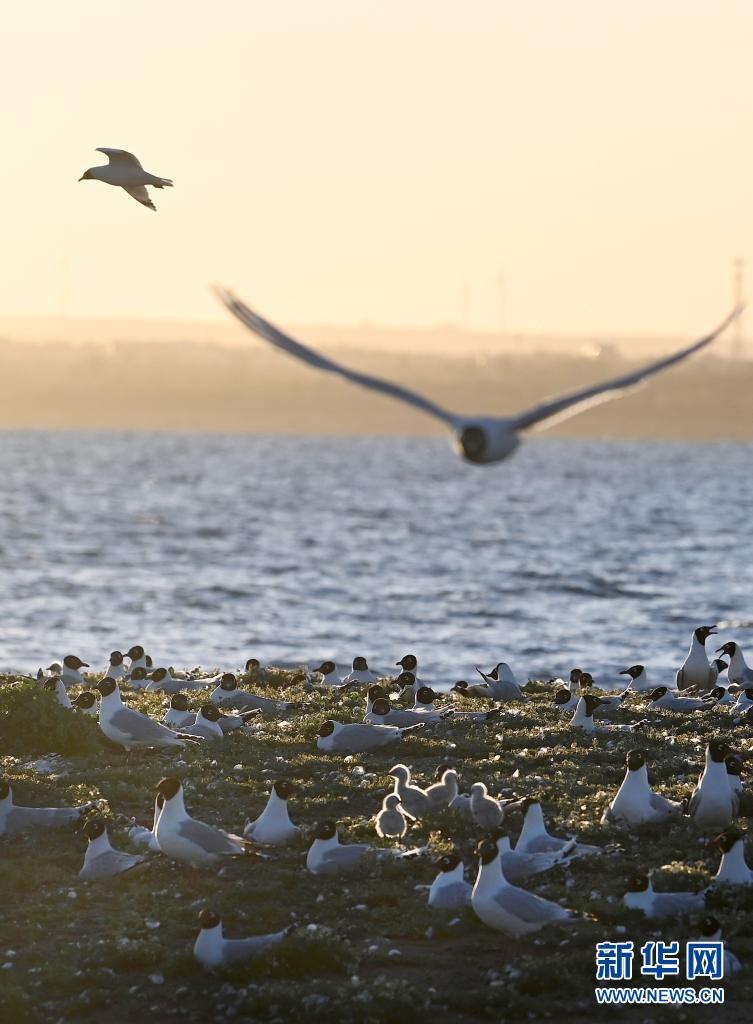 近期,隨著氣溫升高,陜西省神木市紅堿淖濕地保護區成了遺鷗的樂園,遺鷗在這里覓食嬉戲、孵化后代。