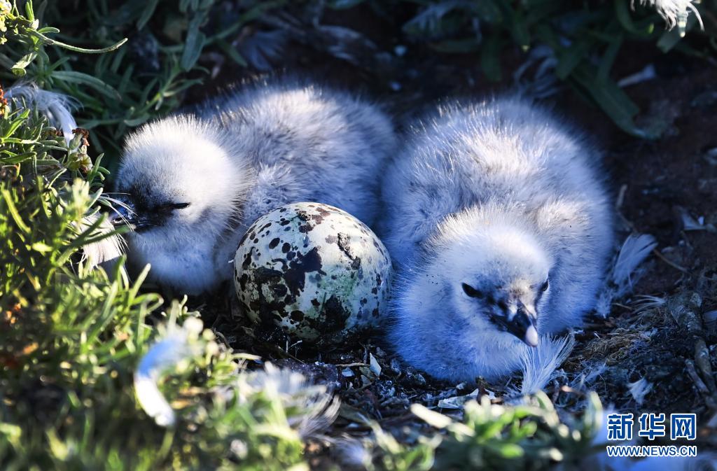 一對小遺鷗在紅堿淖鳥島上出世(6月3日攝)。
