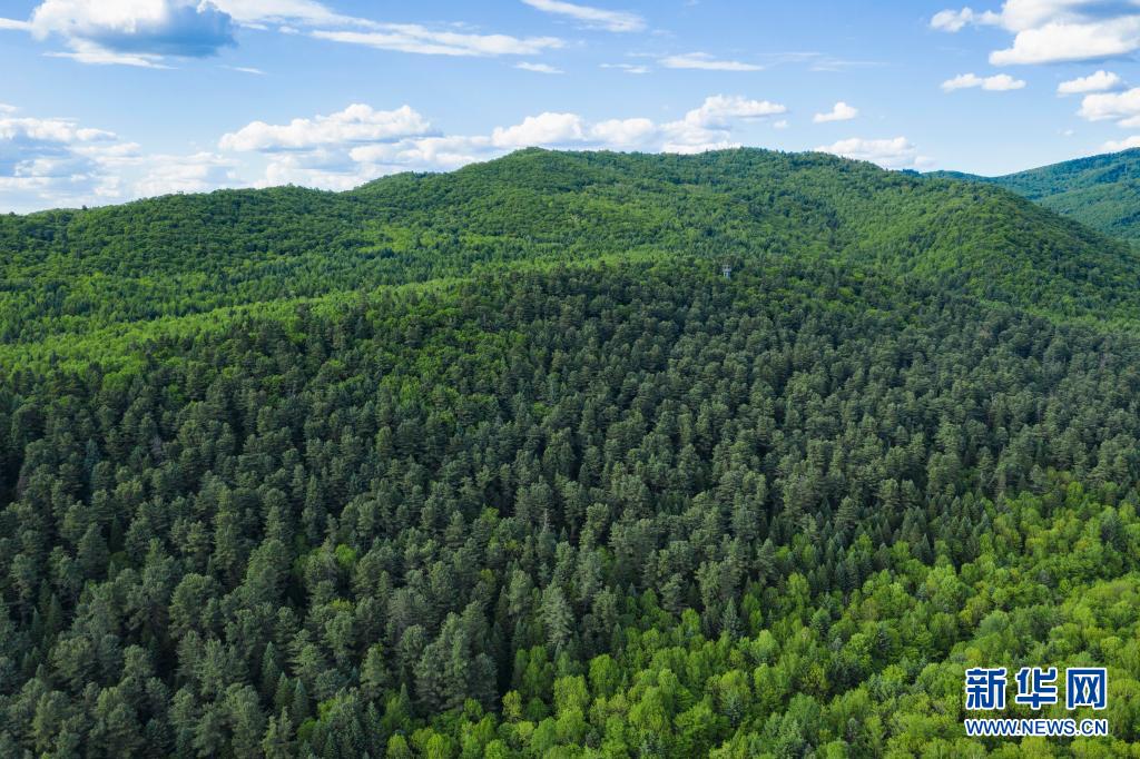 6月2日拍攝的伊春市上甘嶺溪水國家森林公園景色(無人機照片)。