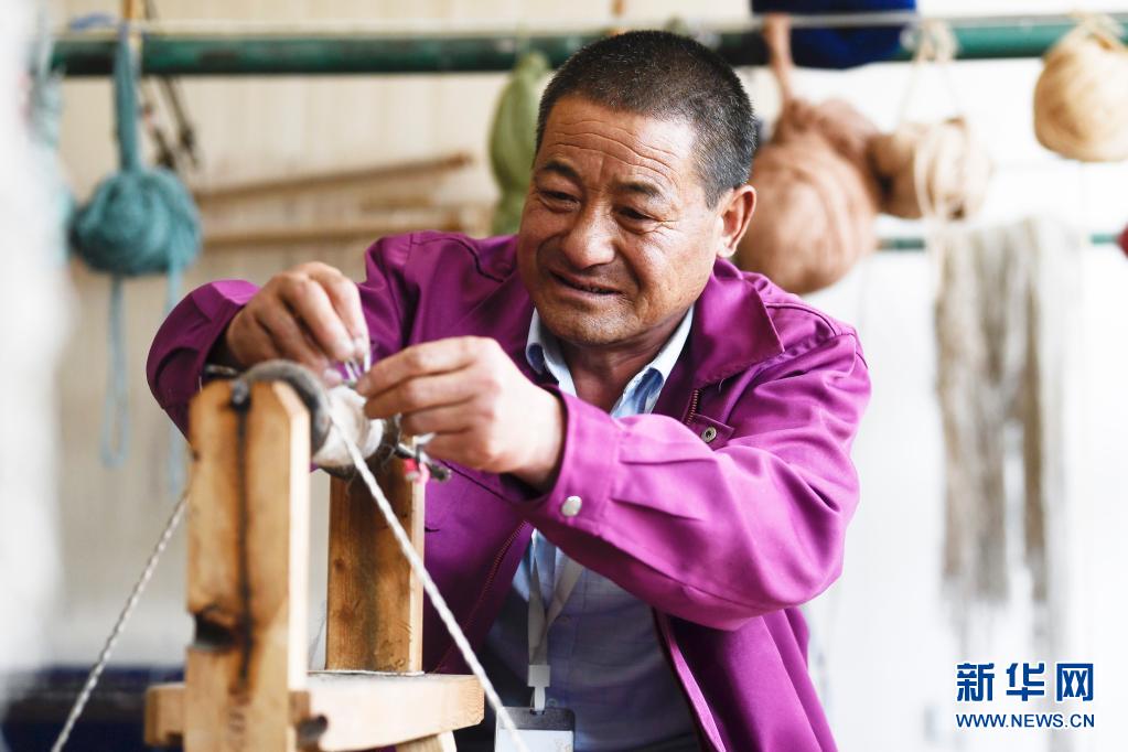 6月5日,在西寧市湟中縣上新莊鎮加牙村,楊永良在捻線。