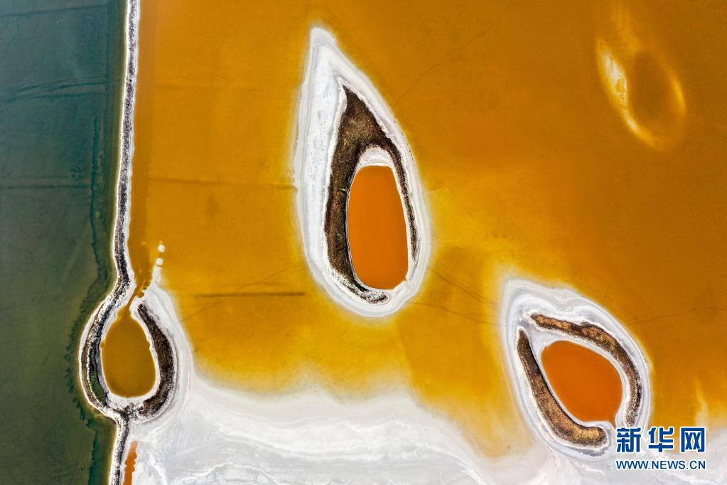 俯瞰山西運城鹽湖一角(6月1日攝,無人機照片)。