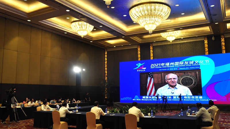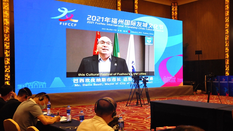 東南網6月8日訊(東南網記者 吳隆重 文/圖)北京時間6月8日,2021年福州國際友城文化節以全球多點連線的方式在福州開幕。福州市市長尤猛軍、副市長杭東等出席活動。