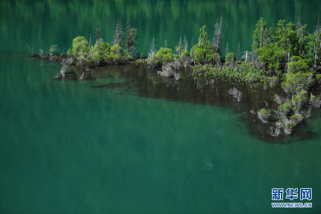 6月10日拍攝的新疆阿勒泰地區喀納斯景區臥龍灣景色(無人機照片)。