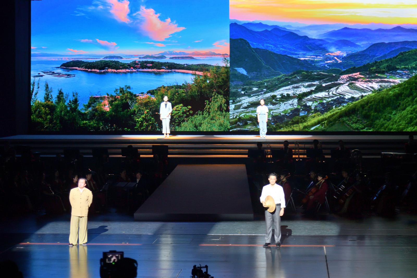 百年征程波瀾壯闊,百年初心歷久彌堅。晚會在序曲“百年風華”中拉開帷幕,以合唱、情景表演、詩朗誦、歌舞、戲曲等多種形式,展現了中國共產黨的百年歷史征程?!帮L展紅旗如畫”篇章講述了福建革命戰爭年代的光輝歷史,《古田,我的家鄉》等歌曲闡述了古田會議精神的深刻內涵;“敢教日月換新天”篇章反映了八閩共產黨員為中華民族偉大復興不懈奮斗的風雨歷程;“閩山閩水物華新”篇章講述了閩寧協作、下黨鄉擺脫貧困等生動故事,全方位展現了在以習近平同志為核心的黨中央堅強領導下,八閩兒女牢記囑托、艱苦奮斗,打贏脫貧攻堅戰、實現跨越式發展的輝煌成就。當生動演繹優秀共產黨員谷文昌、廖俊波先進事跡的情景表演《一諾重千金》結束后,廖俊波同志的父母與妹妹走上舞臺向觀眾致意,全場響起雷鳴般的掌聲,向英雄致敬!晚會達到了高潮。
