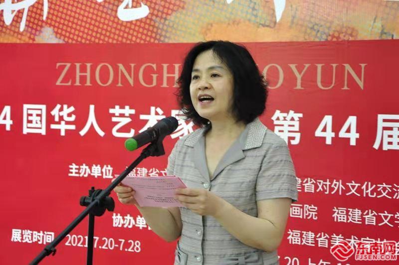 王秋梅在致辭中說,本次參展作品立意新穎、風格多樣、內容豐富,既是廣大海外藝術家書畫造詣的精彩呈現,是他們以書言志、以畫傳情,同心共圓中國夢的赤子情懷,也是他們為第44屆世界遺產大會送上的美好祝福和深情獻禮。她期待,海內外僑界藝術家創作更多精品佳作,進一步弘揚中華優秀傳統文化,讓世界看見福建之美、中華之韻,同心共筑中國夢。福建省文聯將為海內外藝術家提供更多交流互動的平臺和空間,增強海外華僑華人與祖(籍)國的聯系,推動福建與世界各國全方位、多領域的文化交流。