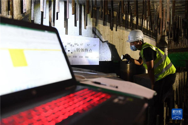 8月23日,施工人員在檢查轉體斜拉橋轉動角度。新華社記者 林善傳 攝