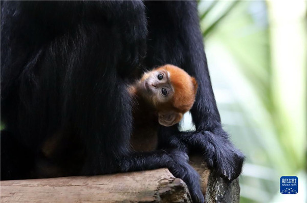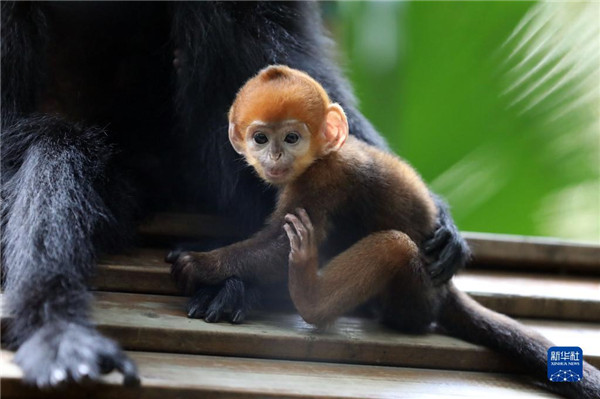 當(dāng)日,廣州長(zhǎng)隆野生動(dòng)物世界的黑葉猴寶寶“大象”首次亮相。母猴“歡歡”在8月12日凌晨生下了黑葉猴雌性寶寶“大象”,這是“歡歡”生的第二胎。剛出生的黑葉猴寶寶全身呈金黃色,兩三個(gè)月后就會(huì)變成黑色。