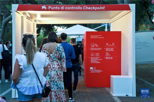 9月1日,在意大利威尼斯利多島,人們排隊(duì)進(jìn)入第78屆威尼斯國際電影節(jié)現(xiàn)場。