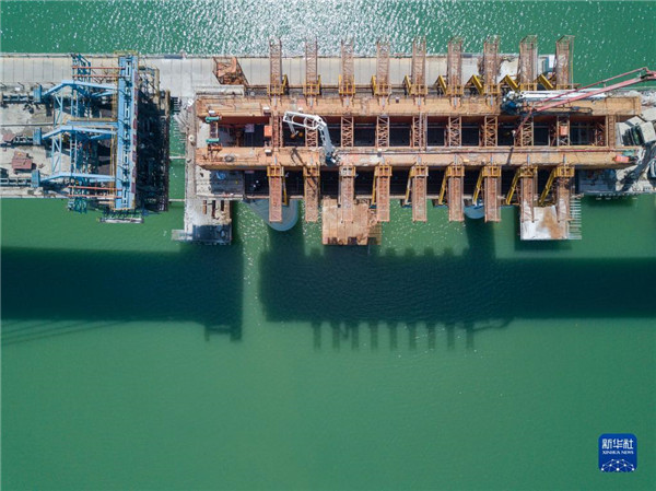 9月6日,大型機械在新建福廈鐵路湄洲灣跨海大橋移動模架澆筑混凝土(無人機照片)。