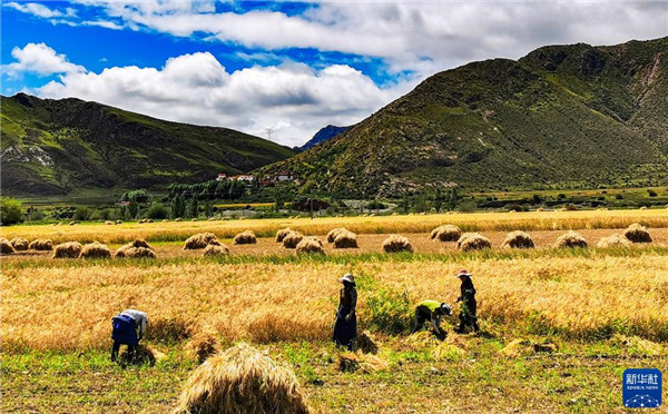 拉薩市林周縣邊交林鄉農民收割青稞(9月5日攝)。新華社記者 沈虹冰攝