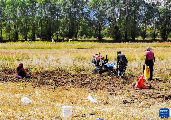拉薩市達孜區章多鄉農民收獲馬鈴薯(9月11日攝)。新華社記者 沈虹冰攝