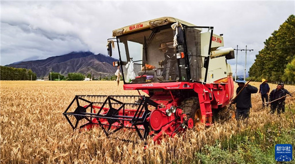 喜看青稞千重浪,高原盡帶黃金甲。九月的雪域高原,一片豐收的喜人景象。