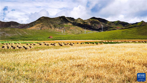 拉薩市林周縣松盤鄉金色的田野(9月5日攝)。新華社記者 沈虹冰攝