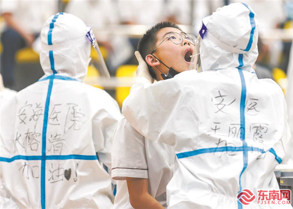 13日,晉江市開始全市師生及校外培訓機構人員核酸檢測。福建日報記者 王毅 通訊員 曉燕 陳鈞 攝