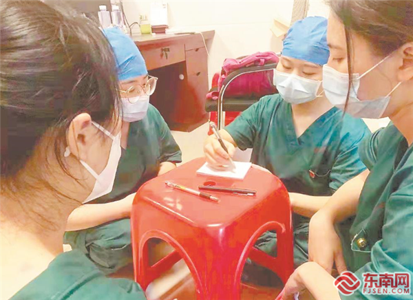 13日,抵達仙游縣后,南平市第二醫(yī)院支援莆田核酸采樣醫(yī)療隊臨時黨支部立即召開支部會議。福建日報記者 蔣豐蔓 通訊員 鄭藝姝 攝