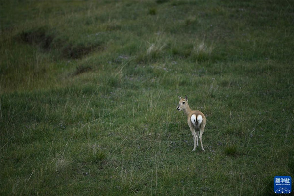 9月15日,一只普氏原羚在青海湖岸邊的牧場內活動。