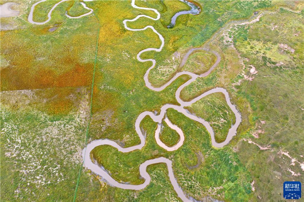 這是9月15日拍攝的青海湖畔的倒淌河(無人機照片)。