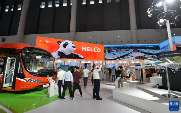 9月16日,觀眾在第十八屆中國(guó)西部國(guó)際博覽會(huì)場(chǎng)館內(nèi)參觀。