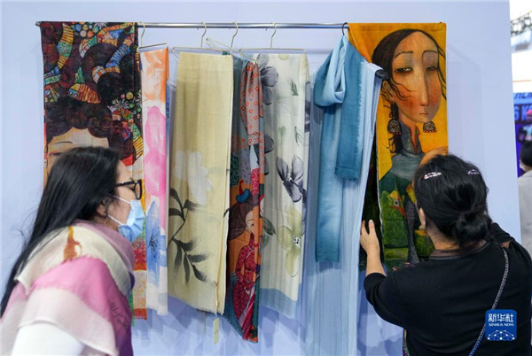 9月23日,參觀者在第十三屆中國-東北亞博覽會上選購特色商品。