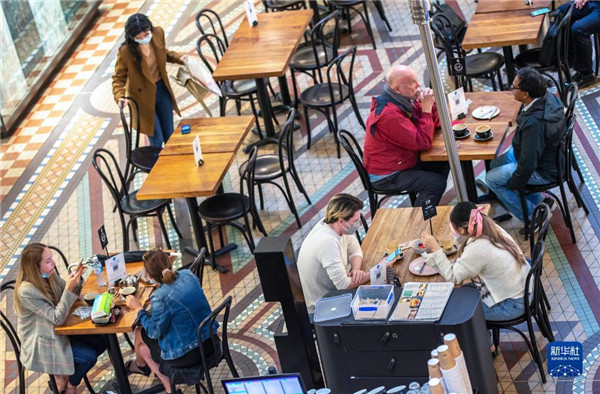 當(dāng)日,因新冠疫情實施“封城”措施的澳大利亞第一大城市悉尼進入“解封”第一階段,餐廳、酒吧恢復(fù)堂食營業(yè),商場、健身房、游泳池等公共設(shè)施也對完全接種疫苗的人士重新開放。