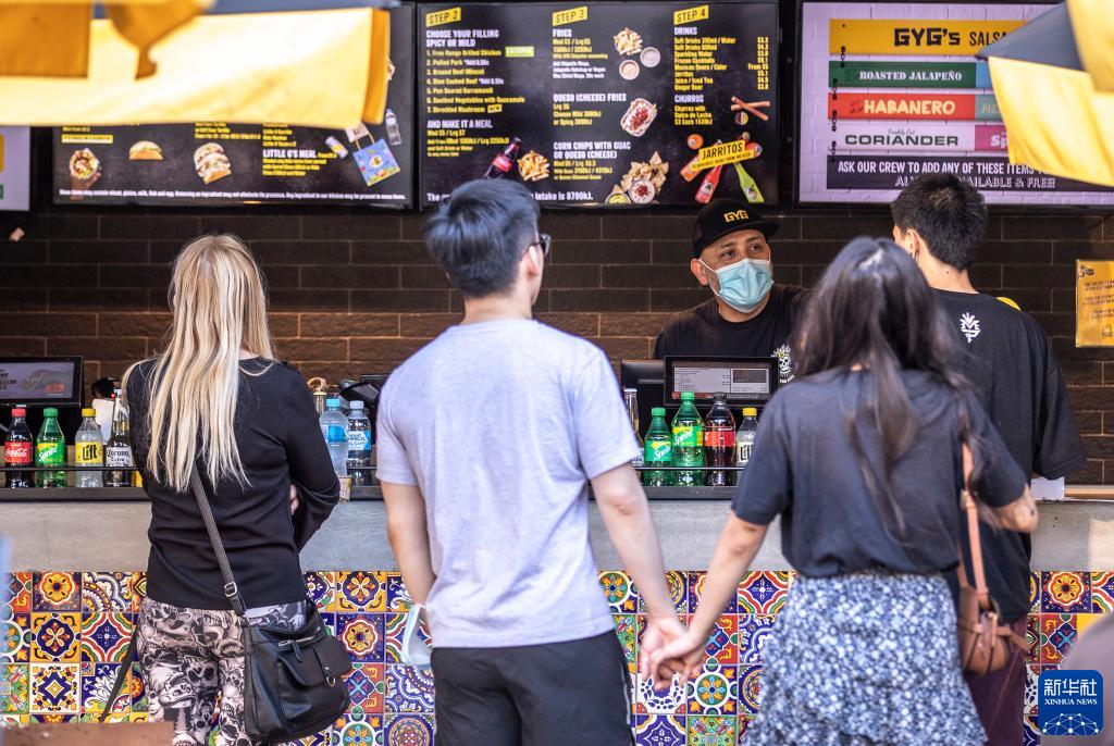 10月18日,人們在澳大利亞悉尼一家恢復營業的快餐店點餐。