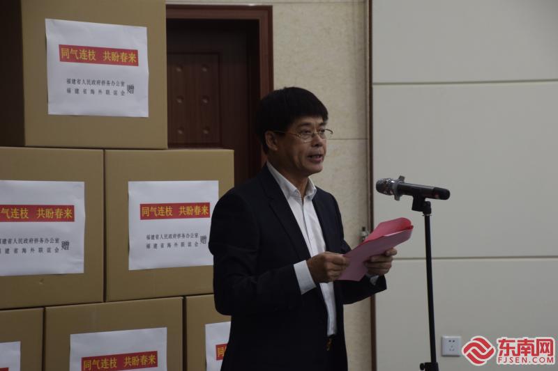 黃進發在致辭中表示,為進一步幫助海外閩籍僑胞抗擊疫情,福建省委、省政府撥付專款采購防疫物資捐贈海外閩籍僑胞,這批物資將支援47個國家的閩籍僑胞共同抗疫。