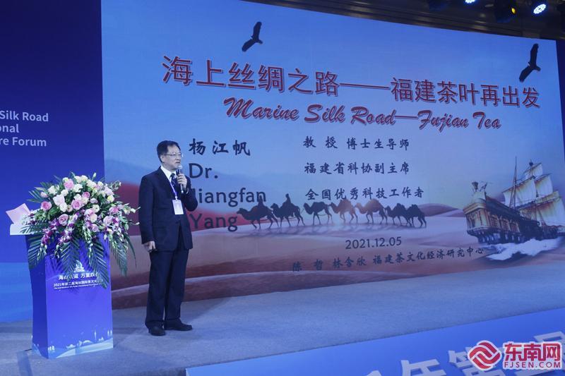 福建省科學(xué)技術(shù)協(xié)會(huì)副主席、國(guó)家特色專(zhuān)業(yè)茶學(xué)帶頭人、福建農(nóng)林大學(xué)教授楊江帆發(fā)表主旨演講。東南網(wǎng)記者 林先昌攝