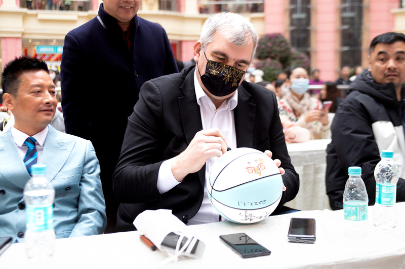 1月1日,塞鐵雙語籃球館中國首店在福建省福州開業。圖為塞爾維亞總領館副領事沙薩·耶雷米奇給籃球簽名 陳佳立供圖