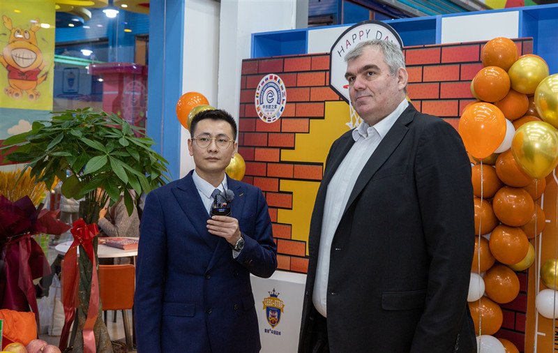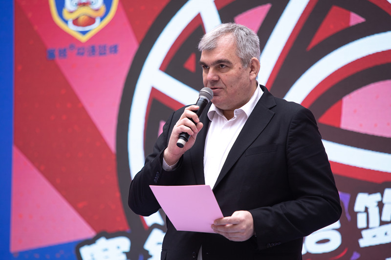 1月1日,塞鐵雙語籃球館中國首店在福建省福州開業。圖為塞爾維亞總領館副領事沙薩·耶雷米奇現場致辭 陳佳立供圖